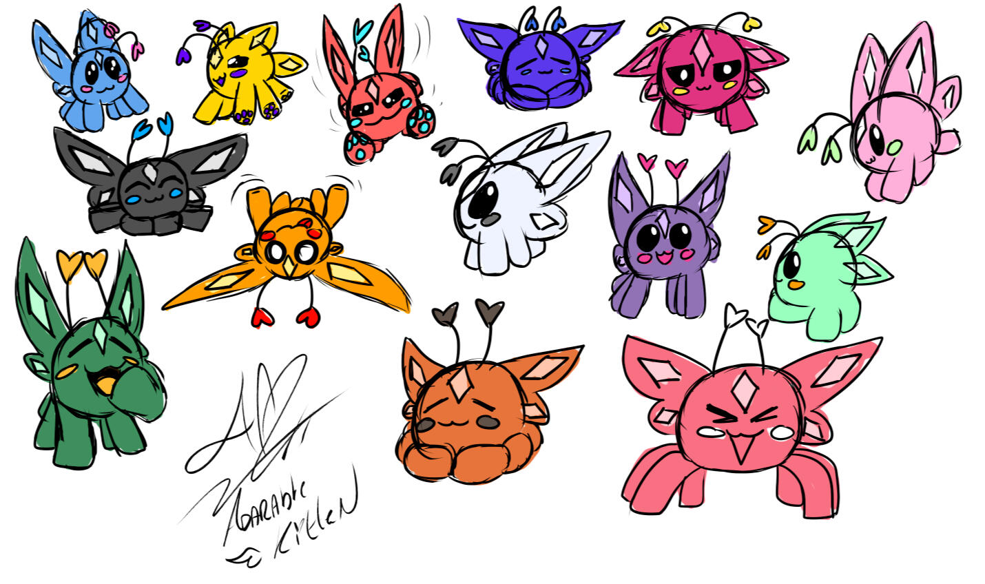 "ButterflyCubs" are the Fan name for adarablekitten's fans. the fan name metamorphized into this new found name after evaluation of her chat mascots physical traits after being known as "Butterflies".A Butterfly cub is a butterfly/panther hybrid made entirely from dream magic. Ari made Psyche as a companion and representation of her stream chat. in lore butterflycubs are the best way ari could make the souls of dreamers have a tangible form within her world called Imagina.ButterflyCubs Have a Round soft velvety body made up of very short fur and butterfly dust. Cubs have 6 paws with 3 toe beans and a pad. Cubs have butterfly wings on the top of their bodies angled down their backs. cubs also have 2 heart shaped antenna and a soul crystal on the forehead. Cubs can come in many colors depending on the dreamers soul aura.